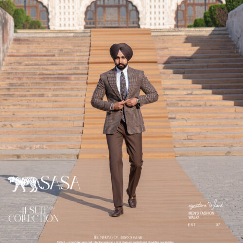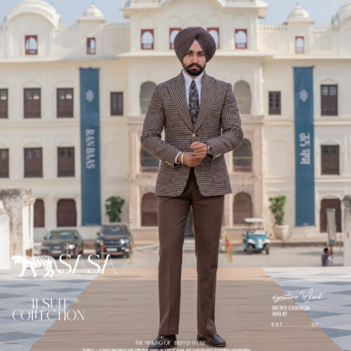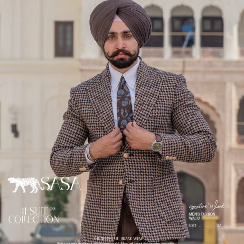 Elevate your style with this striking houndstooth blazer crafted on a refined beige base and enriched with deep brown, burgundy, and dark green tones. The rich color blend adds dimension and sophistication, creating a unique yet classic statement piece. Paired with mocha brown pants, the outfit delivers a seamless balance of earthy warmth and bold detailing. This combination is perfect for formal events, premium gatherings, or fashion-forward business wear. The blazer’s multi-tone houndstooth pattern offers a modern twist on a timeless design, ensuring you stand out with confidence and refined elegance in every setting.