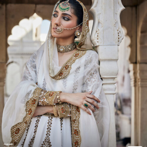 The Ivory Rose Anarkali Salwar & Dupatta embodies timeless elegance and refined charm. Crafted in a soft ivory rose shade, this Anarkali is beautifully enhanced with intricate gold and bronze embroidery that adds a subtle yet luxurious glow. The flowing silhouette reflects classic tradition, while the detailed craftsmanship elevates its sophisticated appeal. Paired with a matching dupatta, this ensemble creates a graceful and poised look. Perfect for weddings, festive celebrations, and special occasions, it is designed for those who appreciate understated beauty blended with traditional artistry and everlasting elegance.