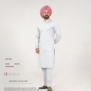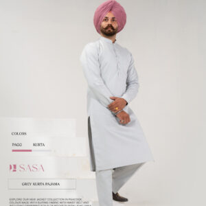 Light grey colour kurta & pajama in rich cottan fabric with so many choices of turban.