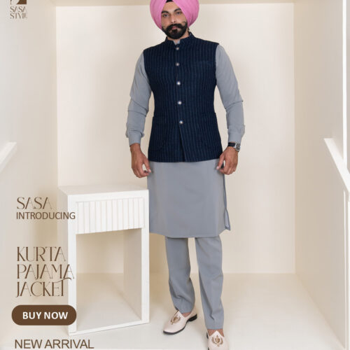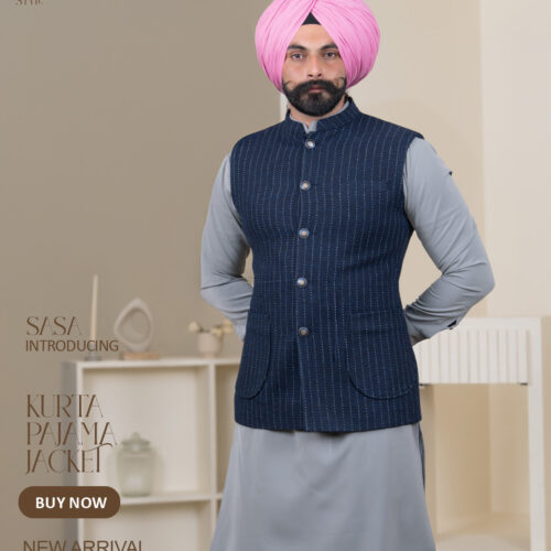 A navy pinstripe jacket exudes sharp sophistication and timeless elegance, perfect for men who appreciate classic fashion with a modern edge. The deep navy base provides a strong, refined look, while the subtle vertical pinstripes enhance structure and create a sleek, elongated silhouette. Tailored from premium fabric with a polished finish, this jacket offers lasting comfort and a crisp, structured fit suitable for business meetings, receptions, festive occasions, and formal gatherings. It pairs effortlessly with ethnic kurta pajamas. This navy pinstripe jacket reflects power, precision, and understated luxury.