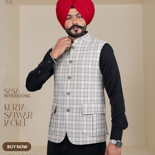 An off-white jacket with black window pane checks brings timeless sophistication to ethnic styling. Its clean off-white base offers a refined and minimal look, while the sharp black lines create a structured, modern design that stands out effortlessly. Tailored with precision using premium fabric, this jacket delivers a sleek silhouette with lasting comfort. Ideal for events such as weddings, receptions, cocktail evenings, festive events, or formal celebrations. Perfect for men who appreciate subtle yet impactful fashion, this window pane jacket reflects class, confidence, and contemporary elegance.
