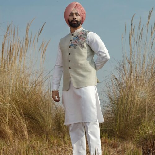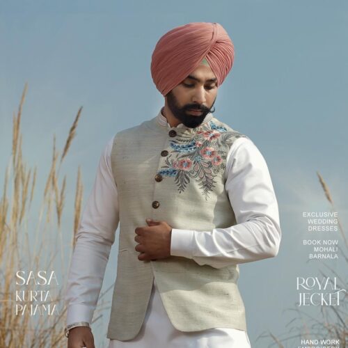 This pastel mint base color jacket reflects understated luxury and refined craftsmanship. Designed with a soft, refreshing hue, it is beautifully enhanced with multicolour floral hand embroidery in gentle pinks, soothing blues, and muted gold accents. The intricate detailing adds depth and elegance while maintaining a clean, sophisticated aesthetic. Perfect for weddings, festive occasions, and premium celebrations, this jacket pairs effortlessly with kurta pajama or sherwani ensembles. Its lightweight structure and tailored finish ensure comfort without compromising style. Ideal for men who appreciate subtle elegance and artisanal detailing, this jacket delivers a timeless look rooted in tradition with a modern, polished appeal.