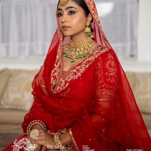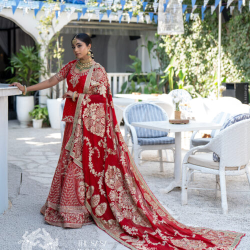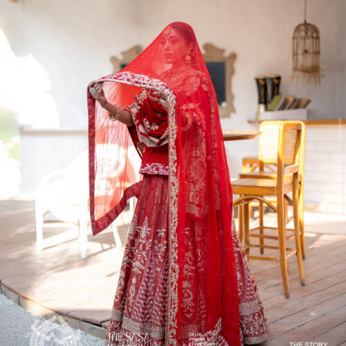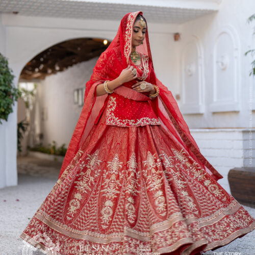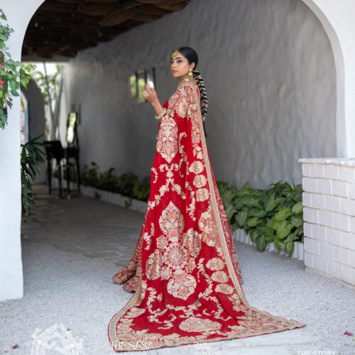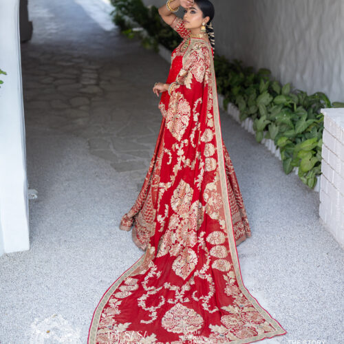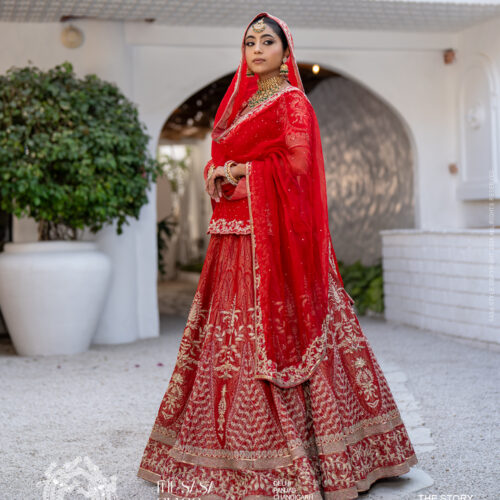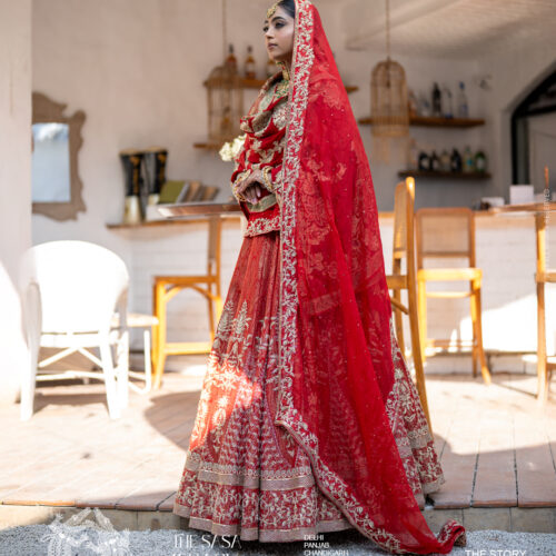 Our red bridal lehenga is a timeless masterpiece that beautifully blends tradition with elegance. Crafted with intricate handwork, it reflects the rich artistry of skilled craftsmanship. The lehenga is paired with a traditional bridal dupatta, embellished with exquisite borders and delicate detailing, adding depth and sophistication to the overall look. Designed for brides who value heritage yet desire refined grace, this ensemble creates a striking presence on the wedding day. Its classic charm ensures that the bride not only looks radiant but also feels connected to timeless traditions, making it perfect for cherishing unforgettable moments that will last a lifetime.