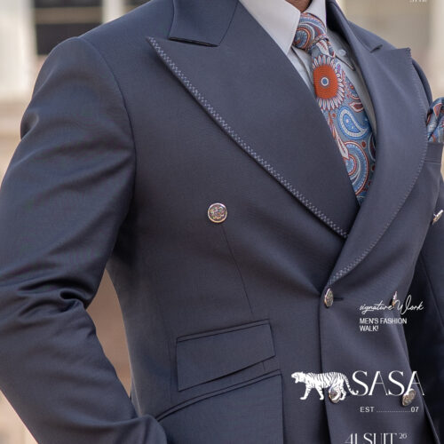 Step into effortless sophistication with this Slate Grey double-breasted 2-piece suit, designed for a bold and modern gentleman. The rich grey tone adds depth and versatility, making it suitable for business meetings, evening events, and luxury gatherings. The double-breasted blazer offers a powerful, structured silhouette, enhancing confidence and presence. Tailored to perfection, the suit delivers both comfort and elegance, ensuring you stand out with refined charm. Its sleek finish and contemporary cut make it an ideal choice for those who appreciate timeless fashion with a modern twist. Pair it with a crisp shirt to complete the polished look.