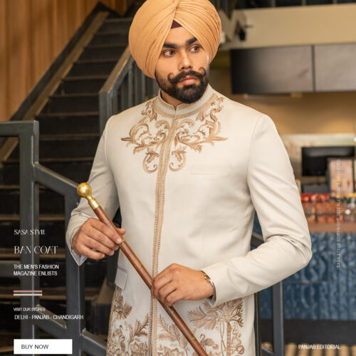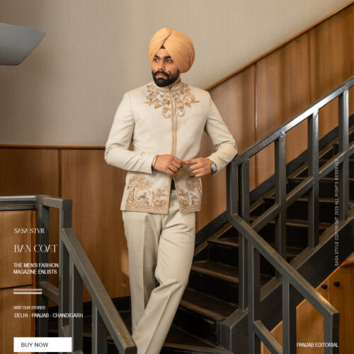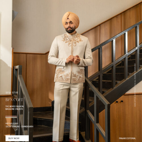 SASA’s Warm Ivory Band Gala Pant defines sophistication with a perfect blend of royal embroidery and modern tailoring. Crafted in soft ivory with intricate detailing, it radiates grace and charm for every occasion. Designed for the gentleman who values tradition yet embraces contemporary fashion, this timeless ensemble ensures you stand out with elegance at weddings, celebrations, or grand soirées.