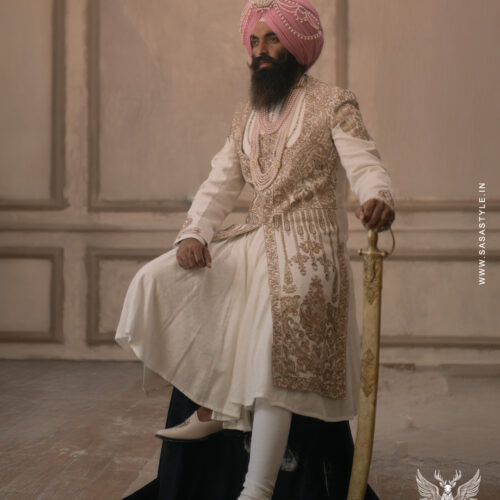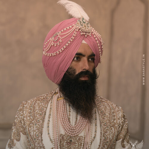 The White and Pink Mala by SASA Style radiates pure sophistication and royal charm. Crafted with precision, it features elegant white and soft pink beads that beautifully complement any groom’s sherwani or pushaq. The subtle color combination symbolizes grace, purity, and romance—perfect for wedding celebrations. Designed to add a refined touch to the groom’s ensemble, this mala blends traditional craftsmanship with modern aesthetics. Each bead reflects SASA Style’s commitment to luxury and detail, making it a timeless accessory for grooms who desire elegance, class, and a touch of contemporary flair on their special day.